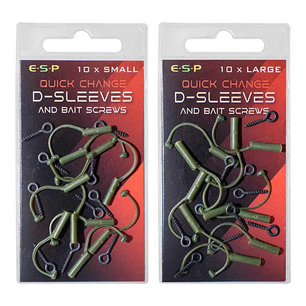 The ESP D-Sleeves create greater separation between the hook and pop-up for improved rig mechanics and better hook holds. The bait screw makes hook bait attachment easy and secure. The sleeve is a snug fit over the hook eye and swivel crook and makes changing the hook effortless.