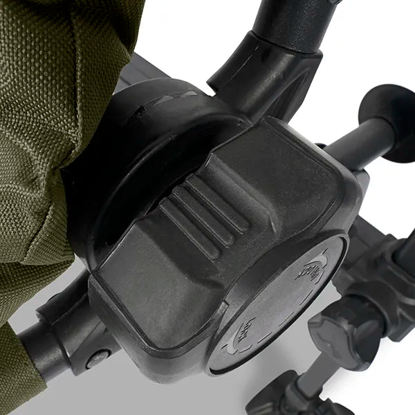 The Korum Supa Deluxe S23 II Chair features a reclining armrest system allowing the armrests to simply be moved out of the way on one or both sides. Korums patented vertical leg design, uses a rounded 23mm square leg design to make it easier to use than ever before.
