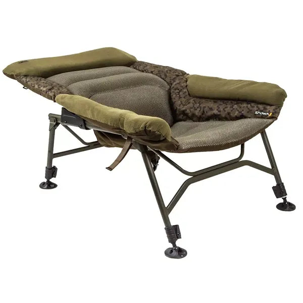 The frame is hewn from the same high tensile aluminium as Solar’s renowned bedchairs and chairs. Plus, it boasts the fixing method that makes them so famous, as it eliminates sag and takes huge weights. Both the front and rear folding legs feature securing clips so the chair won’t collapse under lateral movement.